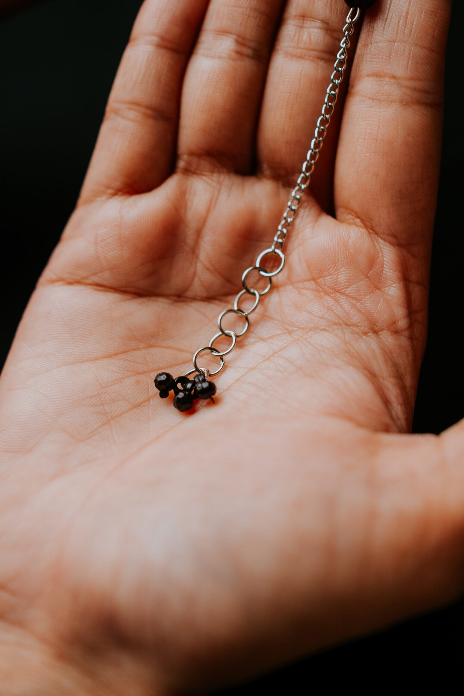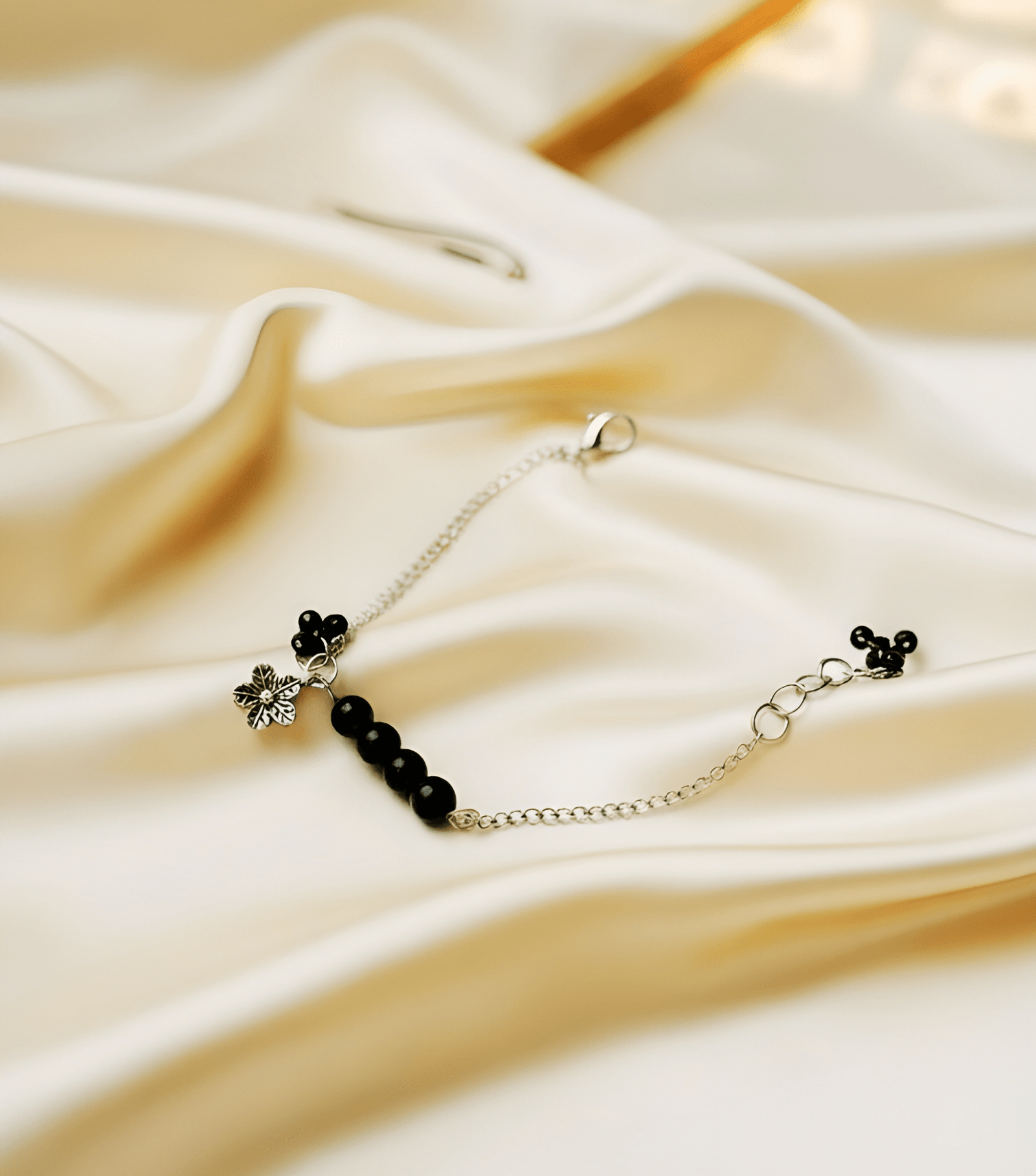 The selected metal beads flow seamlessly into a refined chain, anchored by an intricate floral-geometric charm that whispers of both natural beauty and sacred symbolism. Lightweight yet meaningful, BELAMIO is designed for the mindful woman — whether you’re navigating busy days with centered calm or embracing quiet evening reflections.