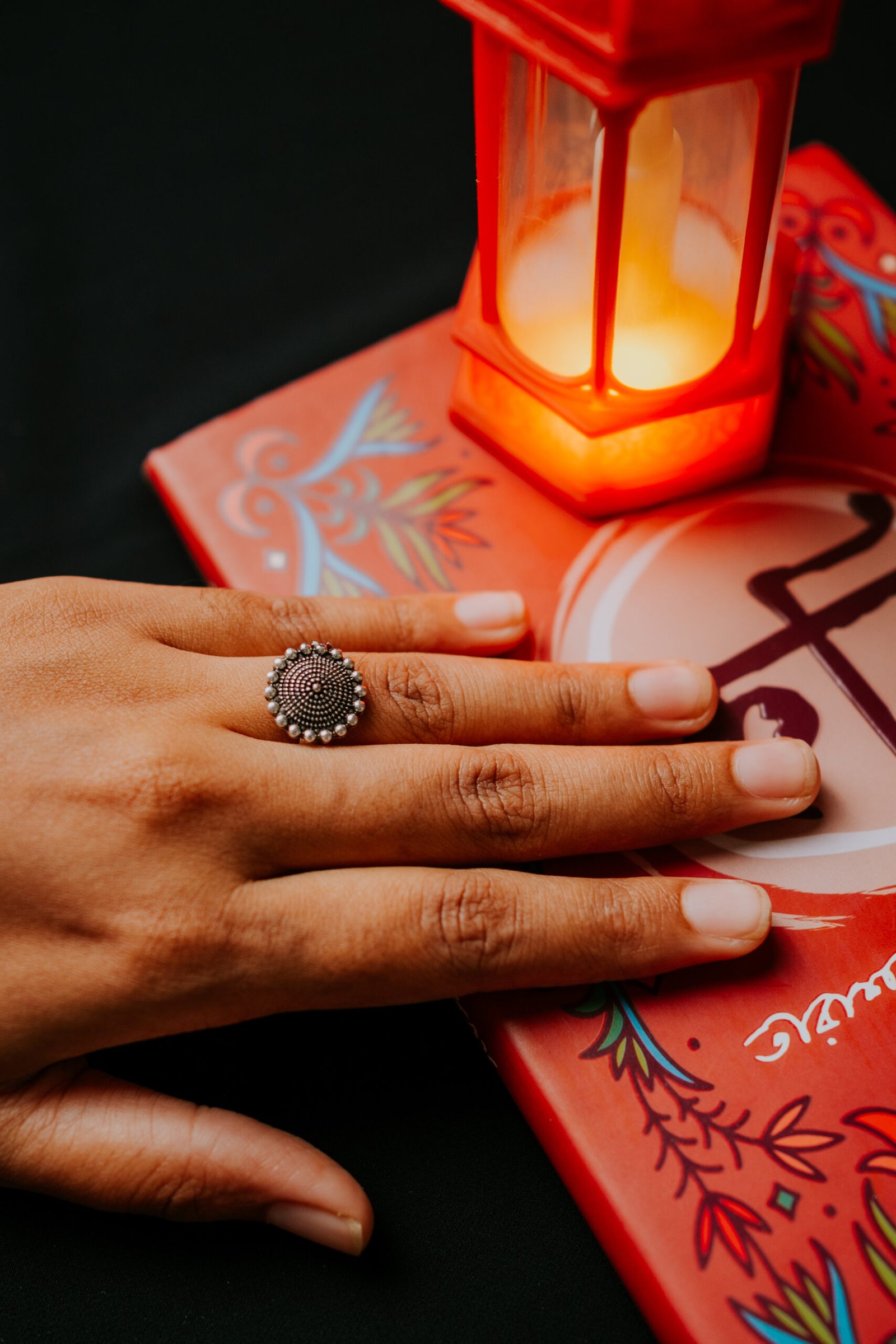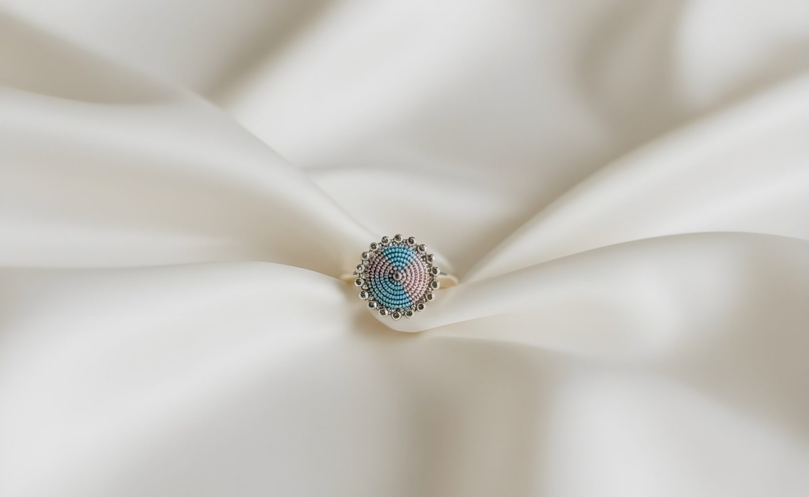 Introducing LUMI, a ring that captures light and reflects your inner brilliance. This stunning piece features intricate spiral metalwork at its heart, surrounded by delicate beaded details that catch and play with every ray of light. Bold yet refined, LUMI is designed for the woman who knows her worth and isn’t afraid to show it.